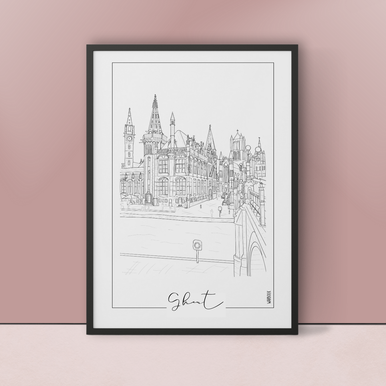 Is er iets wijzer dan de prachtige Graslei, Korenlei, Sint-Michielsbrug en de Gentse torentjes? Ahja! Een poster ervan om op te hangen bij je thuis. Voor iedereen met een hart voor Gent!